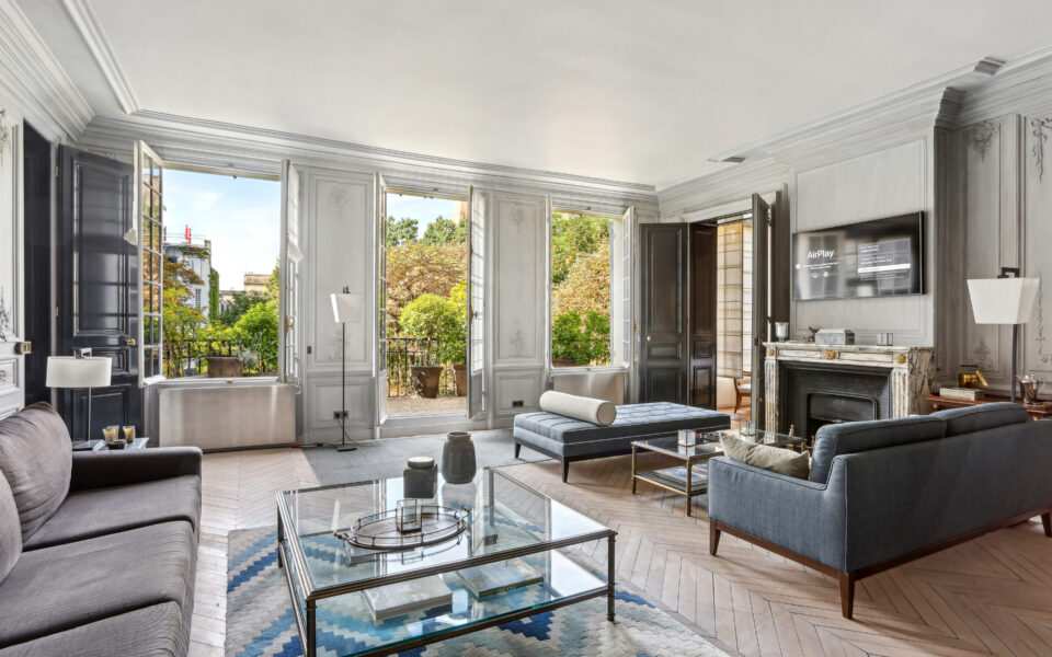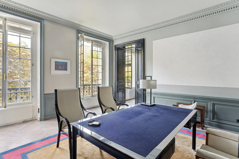 Dans un des plus beaux immeubles du Boulevard Saint Germain, entre la rue du Bac et la mythique place Saint Germain des Près, un appartement de 243 m² au sol, entièrement sur jardin avec balcon orienté Sud, calme et lumineux, au deuxième étage par l’ascenseur, meublé de manière raffinée, composé :d’entrée avec grande salle à manger avec cheminée, vaste salon avec cheminée et balcon, wc d’invités, un bureau, une cuisine dinatoire et office avec équipement professionnel dont cave à vins, une buanderie, une chambre en suite avec grands placards, dressing, salle de bains et douche et wc, deux autres chambres avec placards/dressing et une salle d’eau et wc.