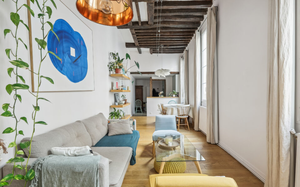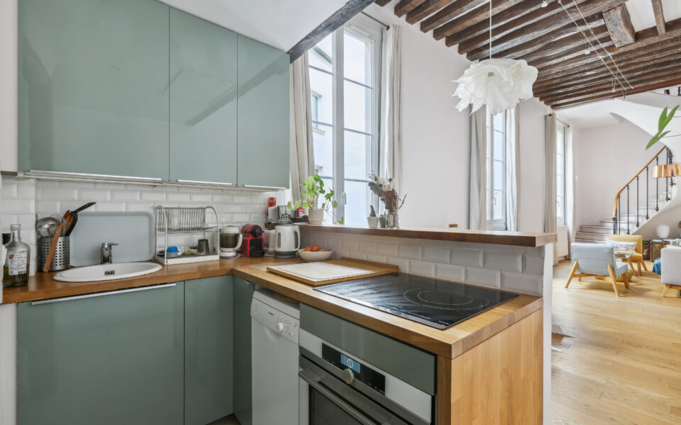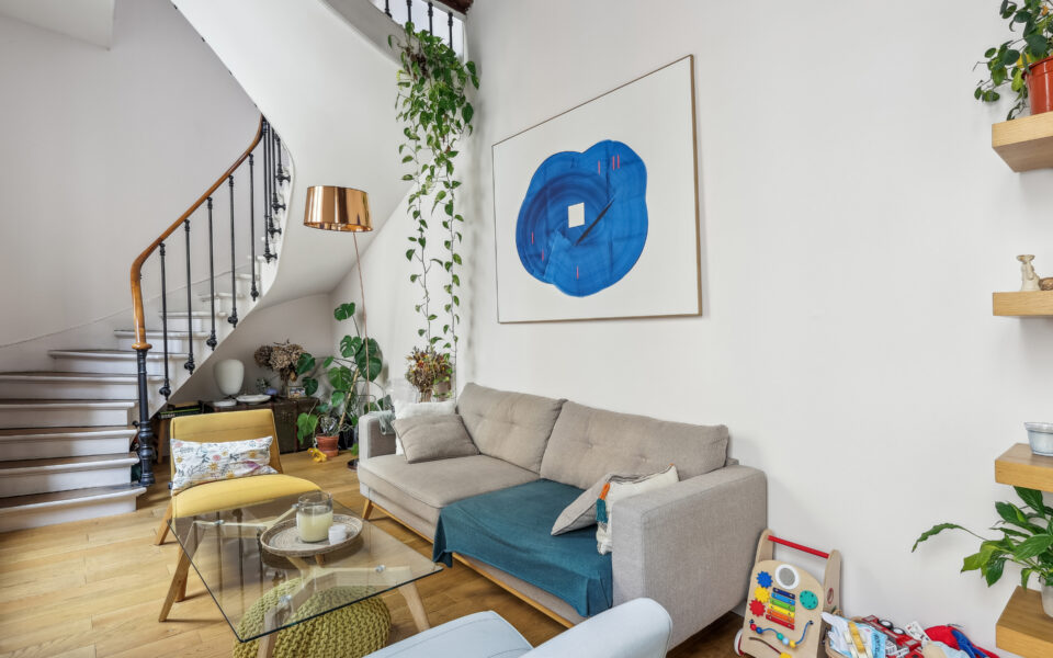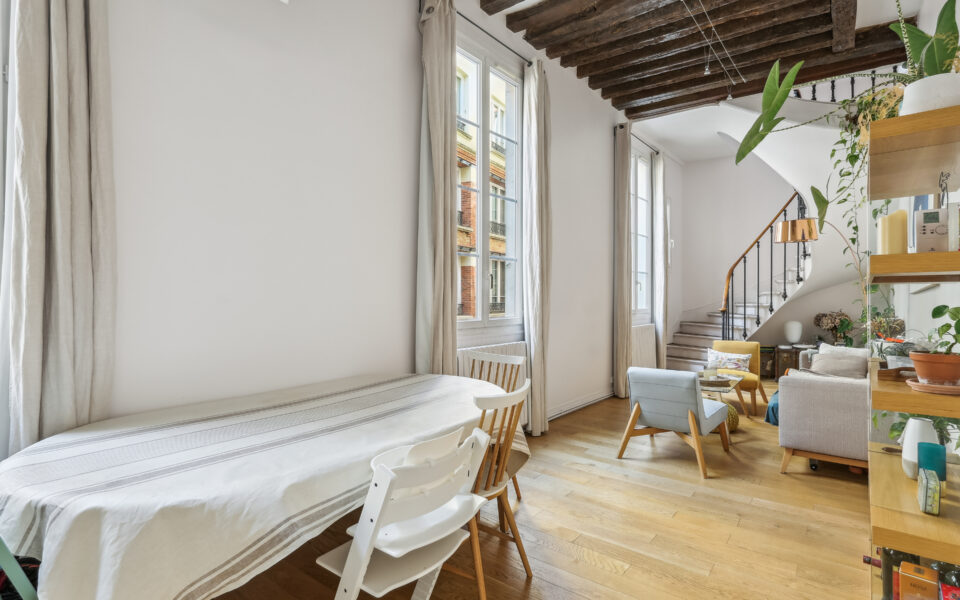 Dans un immeuble des années 1780, un appartement très calme, en duplex au 2ème et 3ème étage avec de beaux volumes, composé: