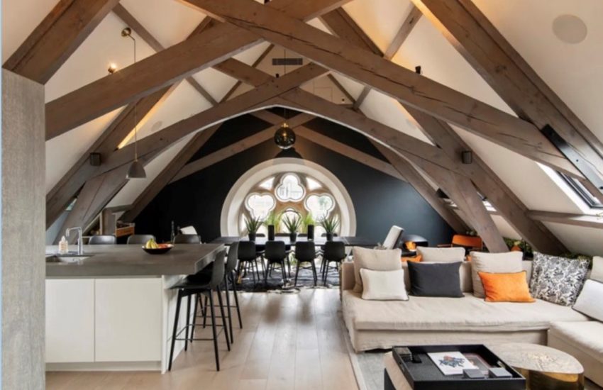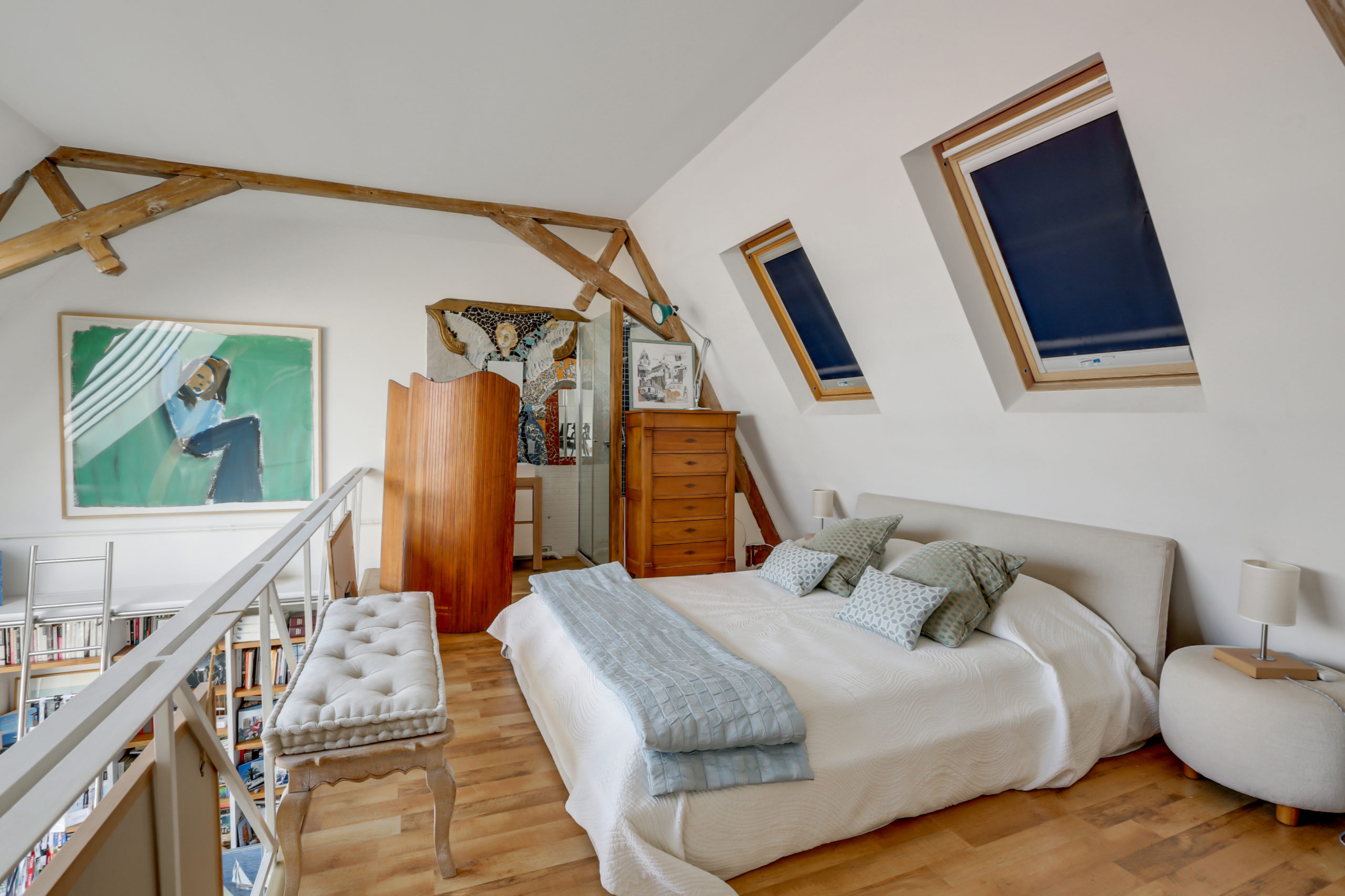 L’espace de vie profite d’une hauteur sous plafond de plus de 4m et d’une verrière avec une belle lumière offrant un cadre de vie ou de travail appréciable.