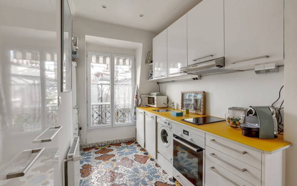 Un studio en excellent état d’environ 15m² au 7ème étage, avec coin cuisine, salle de douche et WC (accès par l’ascenseur principal puis un étage à pied) complète ce bien.