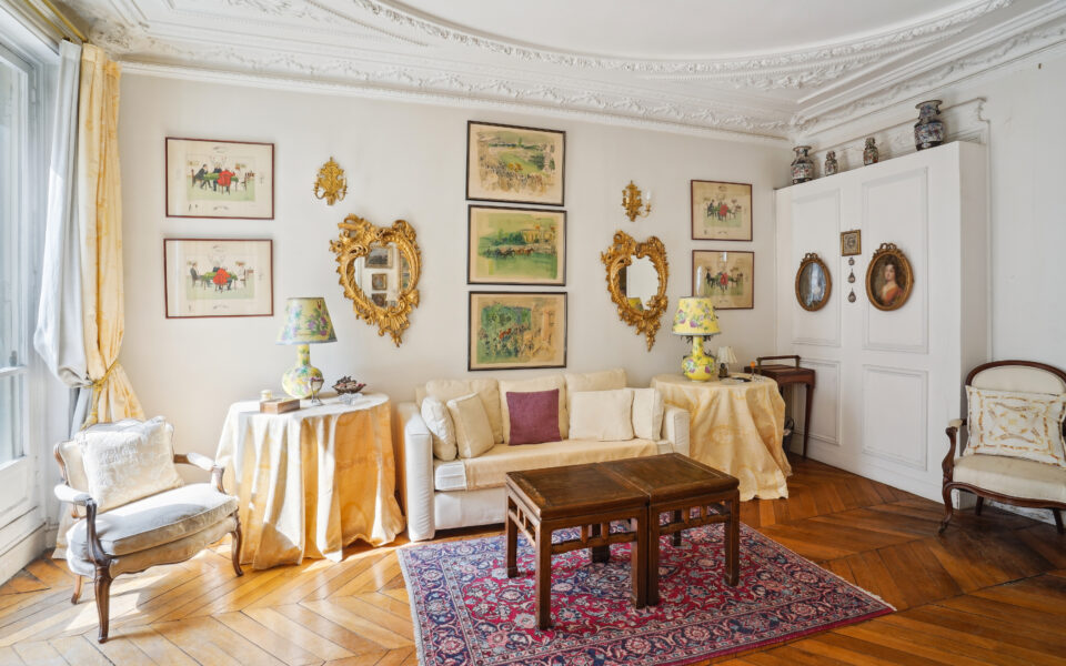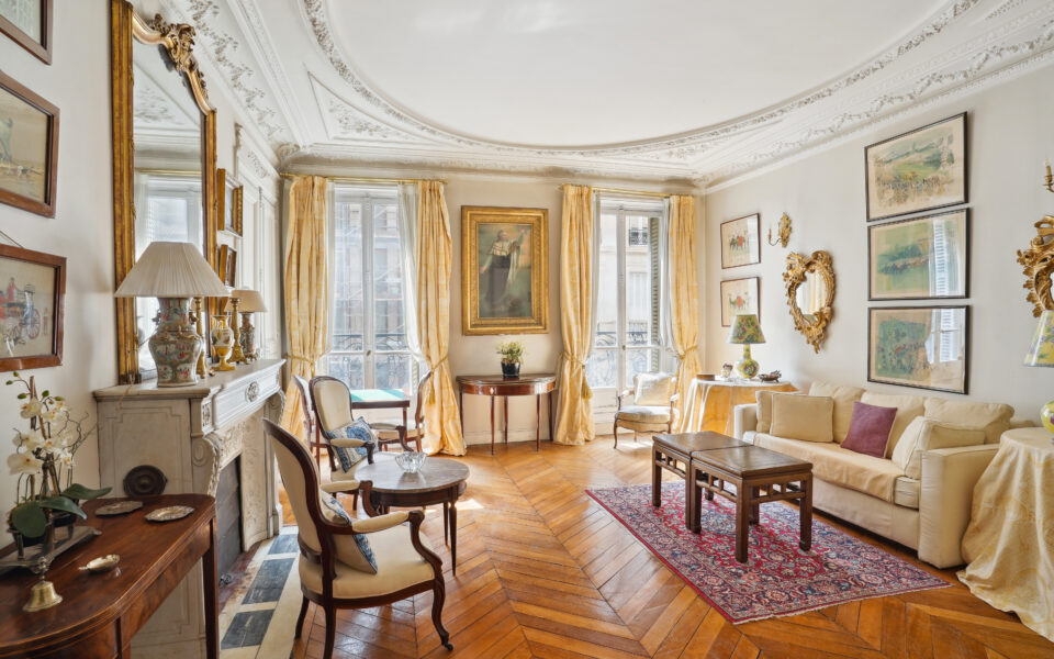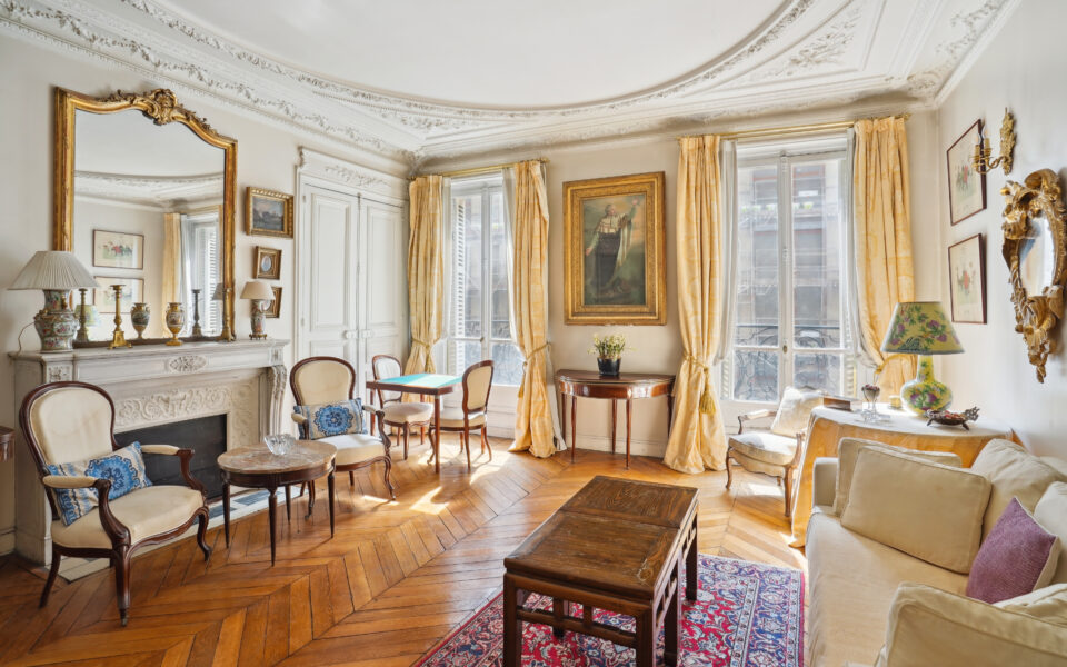 Parquet pointe de Hongrie, très belles moulures, hauteur sous plafond: 3m